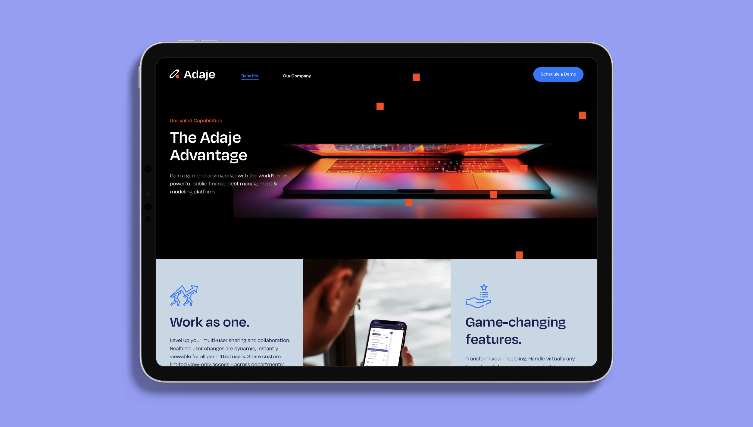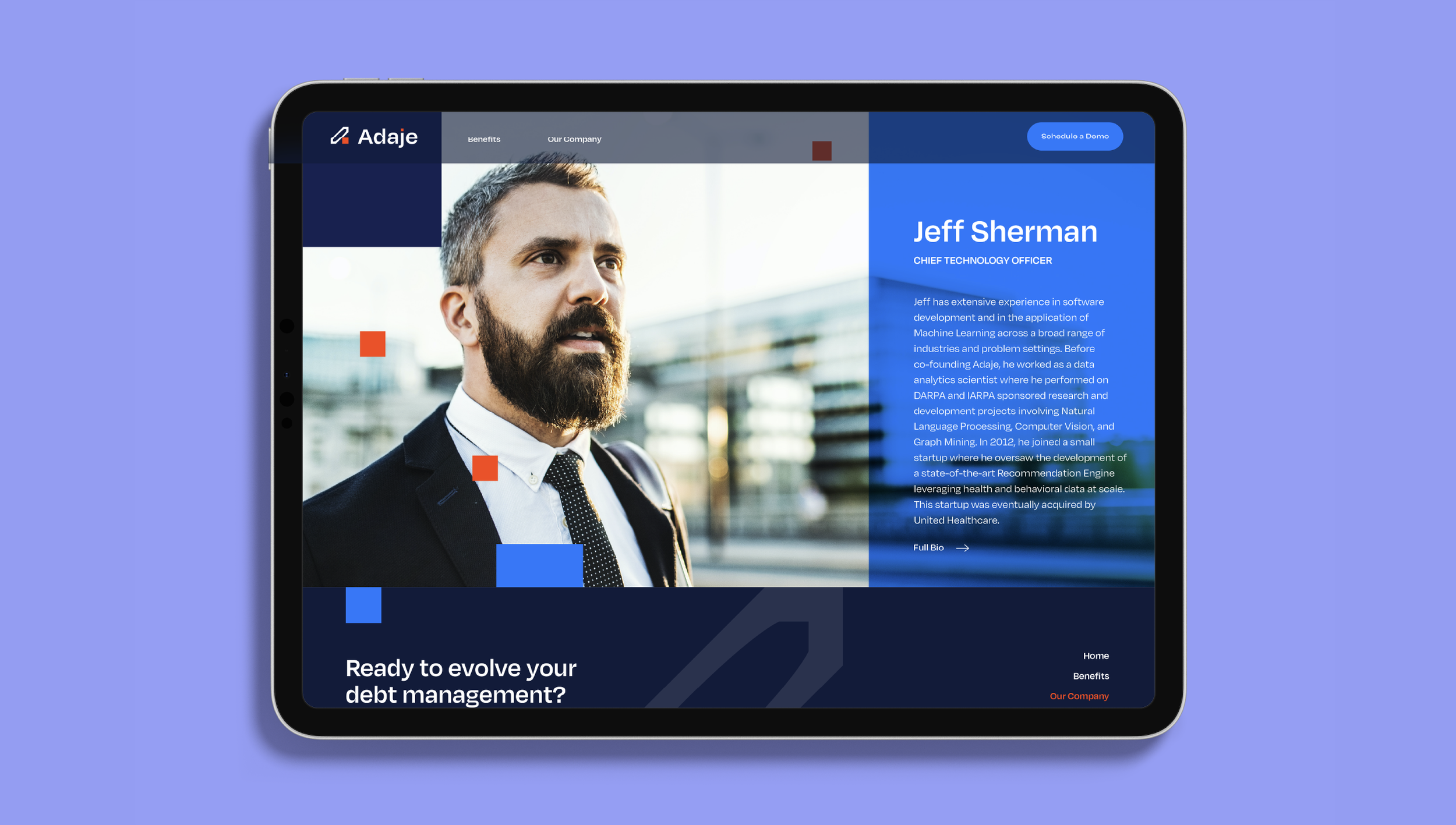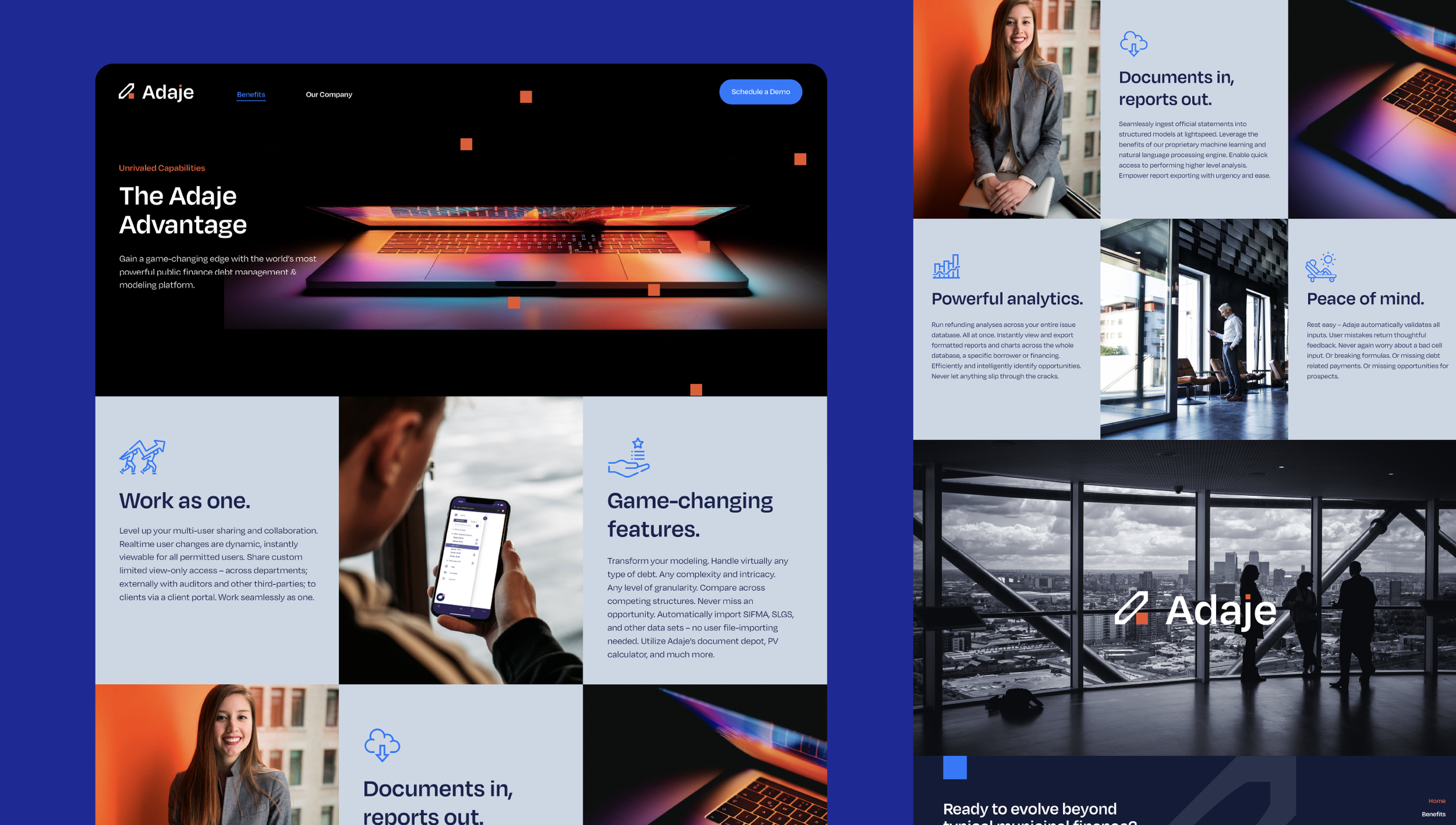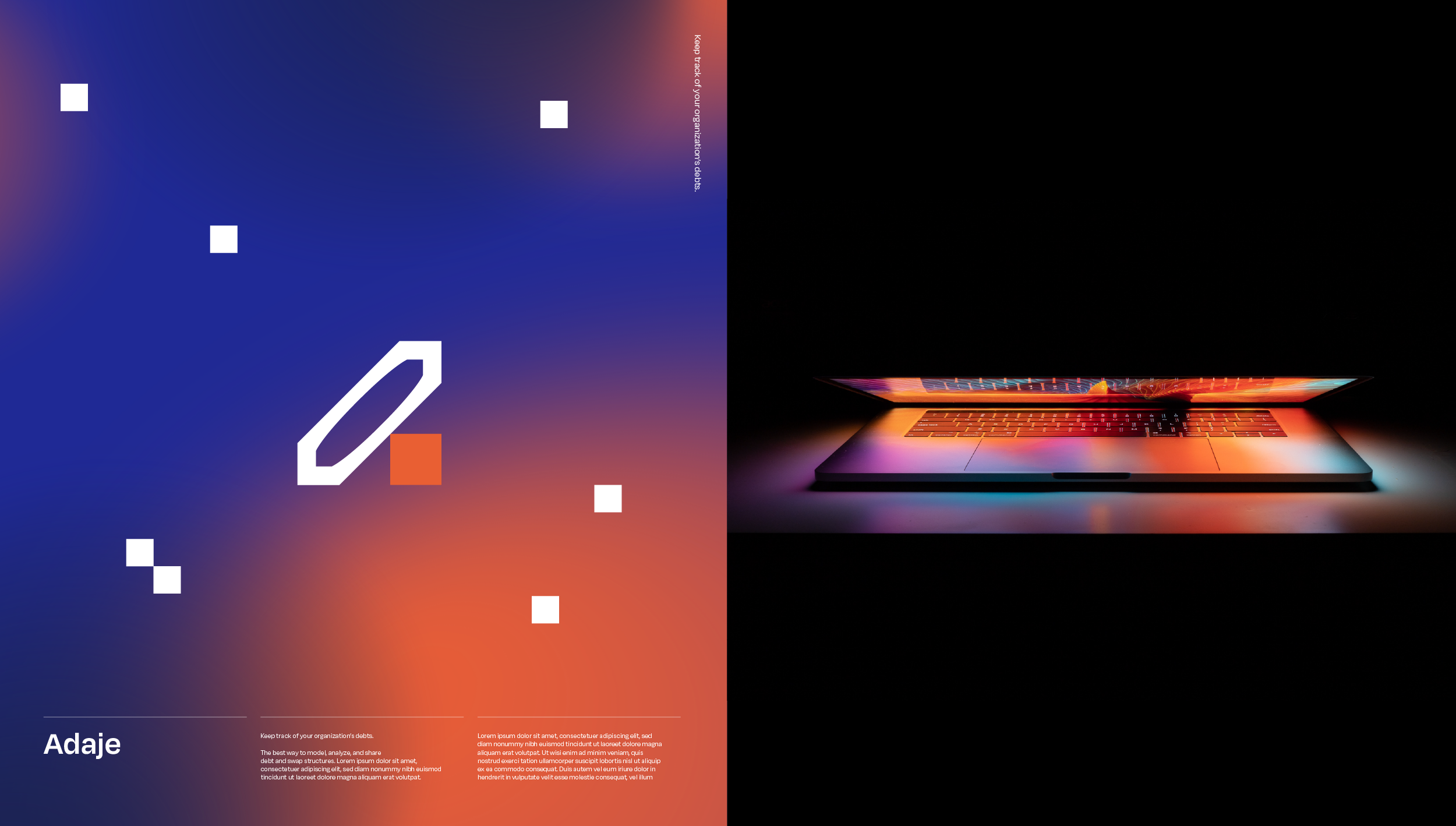 In 2023. Adaje rebrand - fresh new perspective to debt management. Art direction + presentation design + website UI. Designed in collaboration w/Tim DasCompleted at Soldier Unlimited Boston.