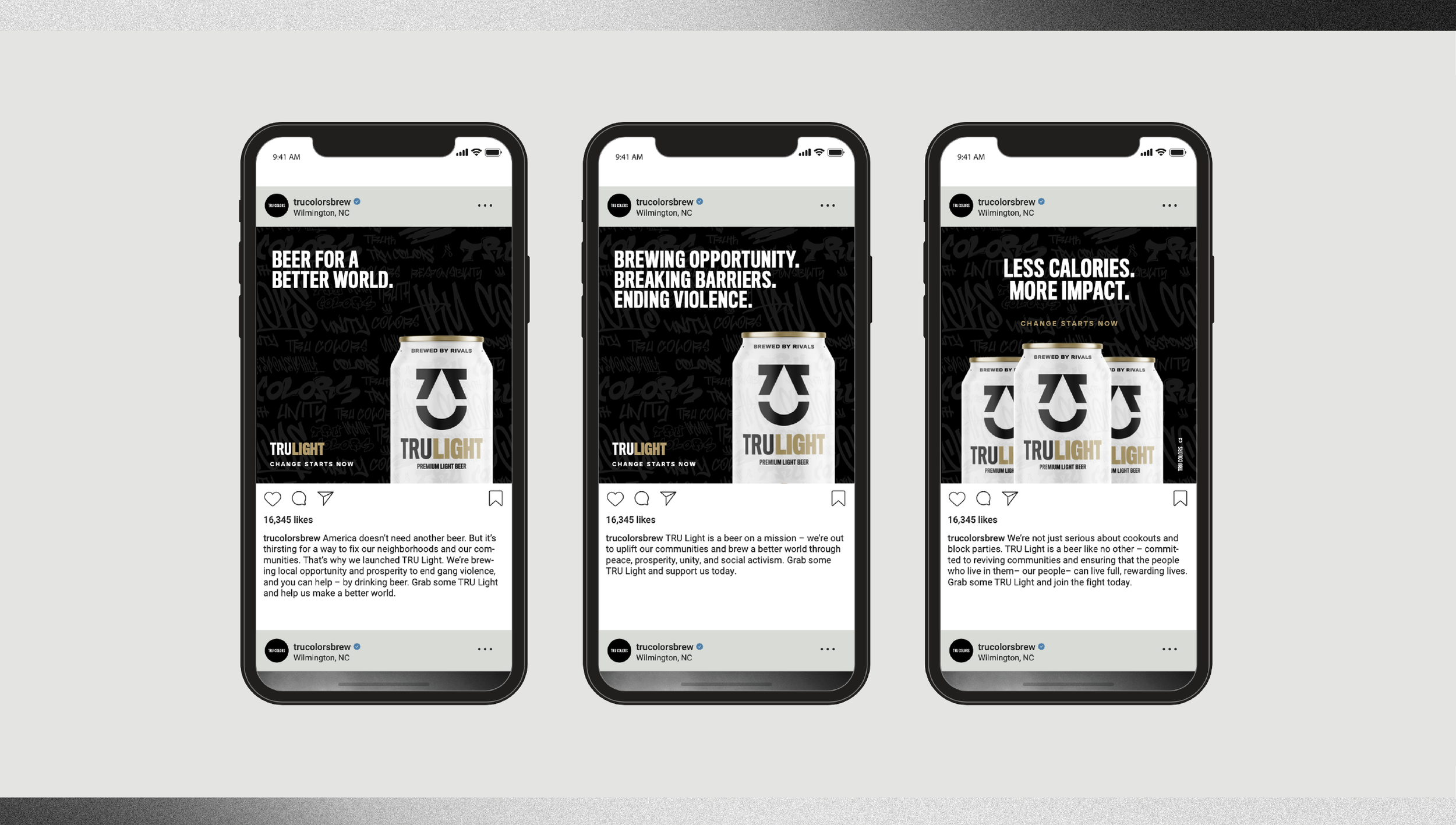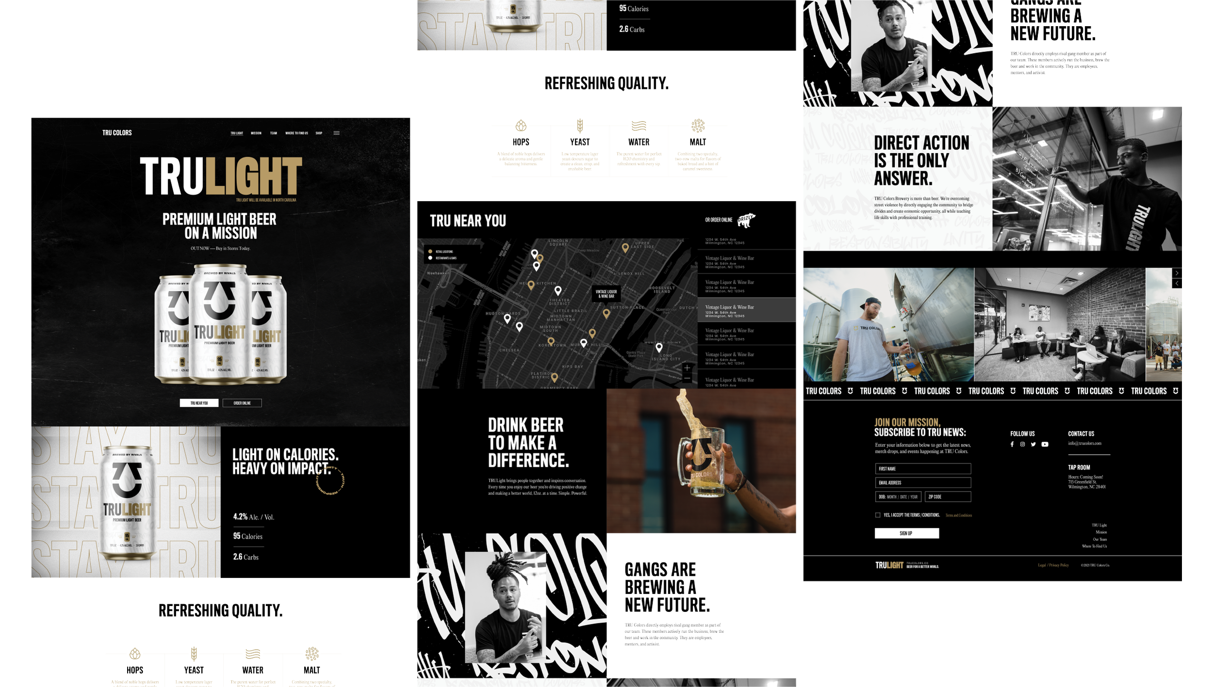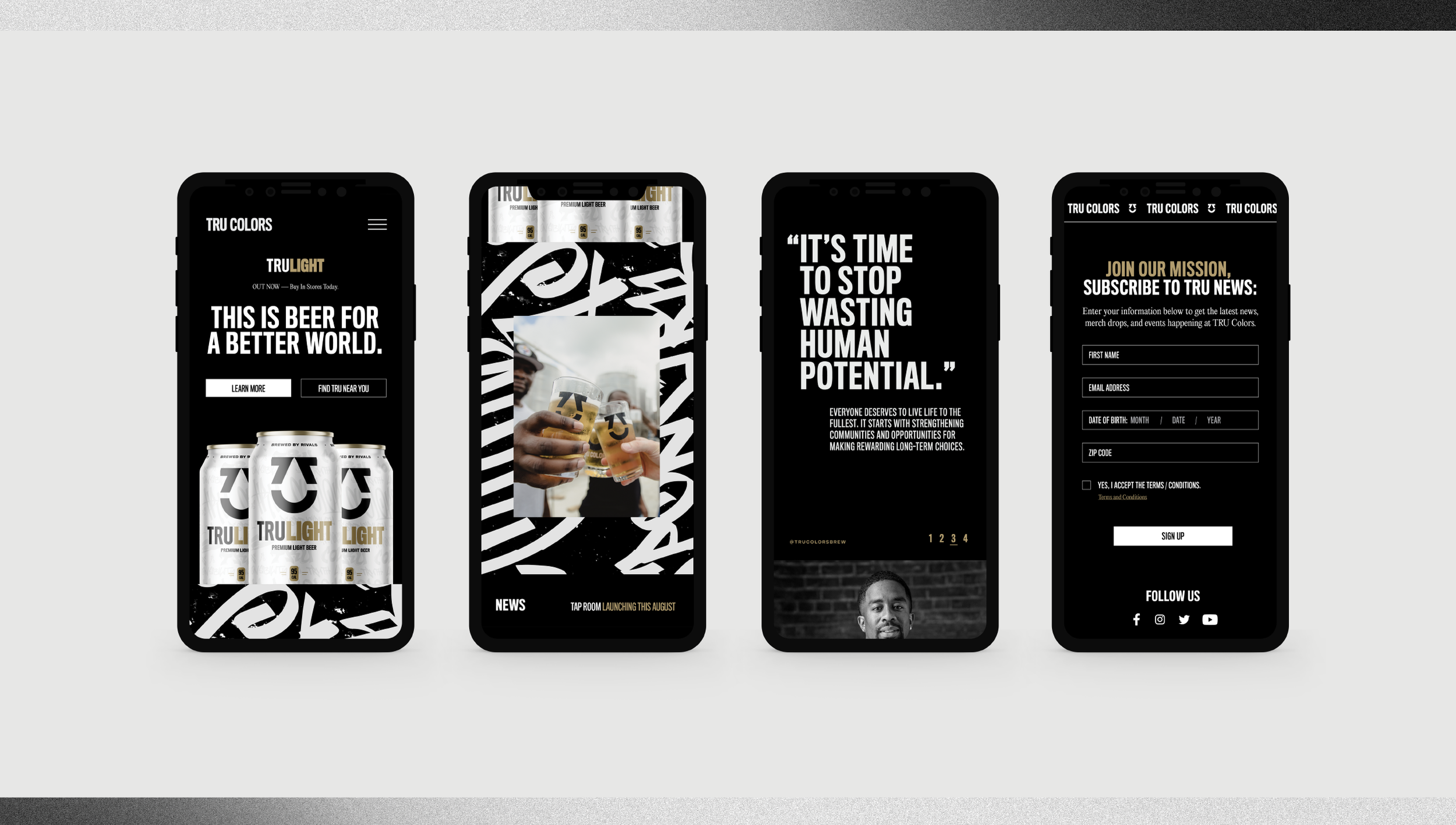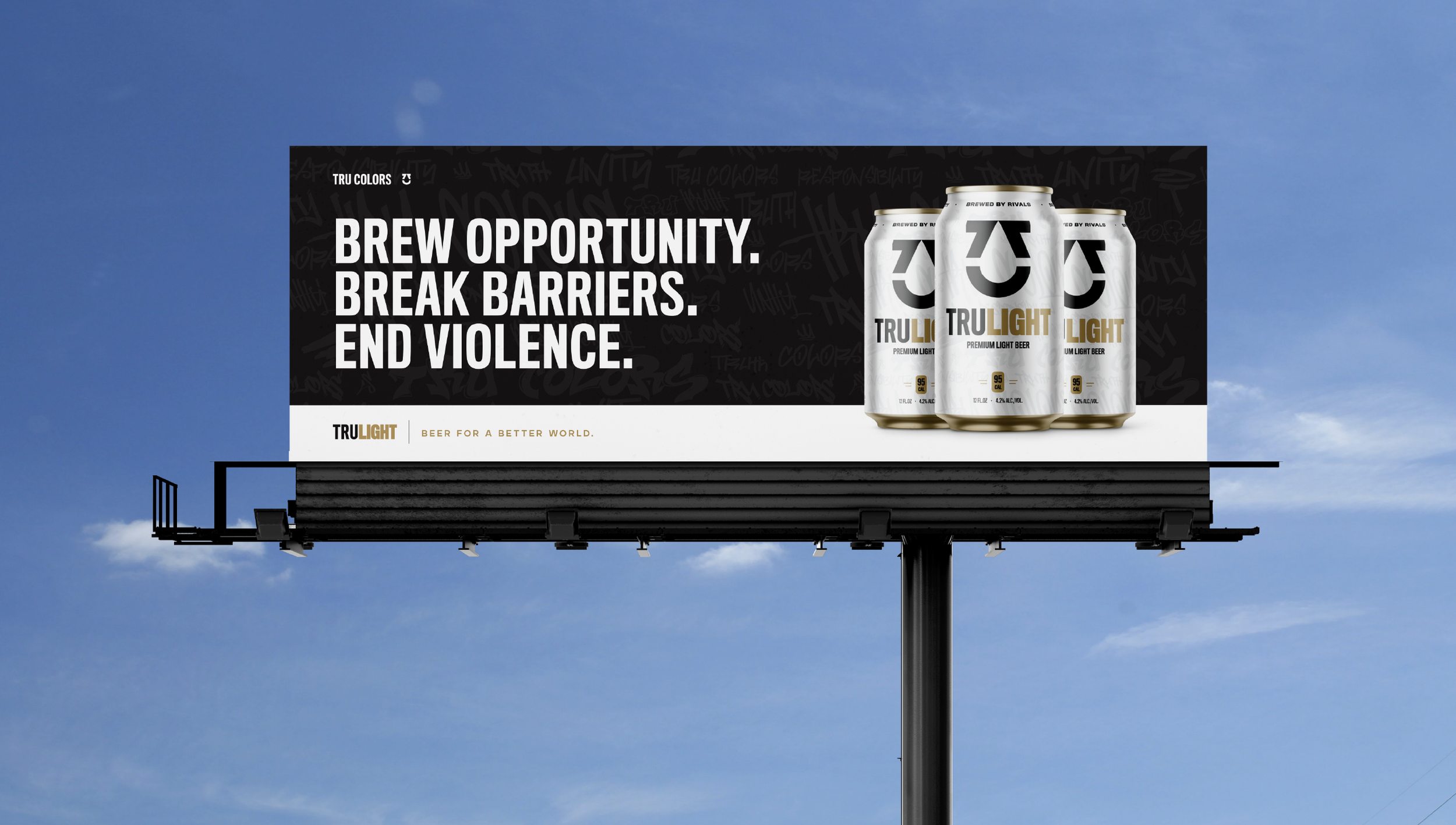In 2020-2021, in an effort to end violence and brew beer in unity we helped to transform TRU Colors brand and launch their first ever beer in market TRU Light with Molson Coors. This was a passion project where the mission aligned with the people and design to make this a trifecta project. From can design, packaging, merchandise, in-store advertisements, OOH advertisements, social, web design, influencer kits, photoshoots, video commercials, and vehicle wraps it was a huge undertaking but we’re very proud of the results.